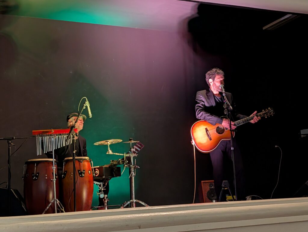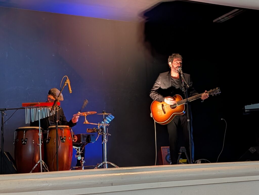 Accompagné de Rodolphe, son partenaire percussionniste, ils ont joué une musique aux accents rock américain et britannique qui a su captiver la foule nombreuse venue pour profiter de ce spectacle gratuit.