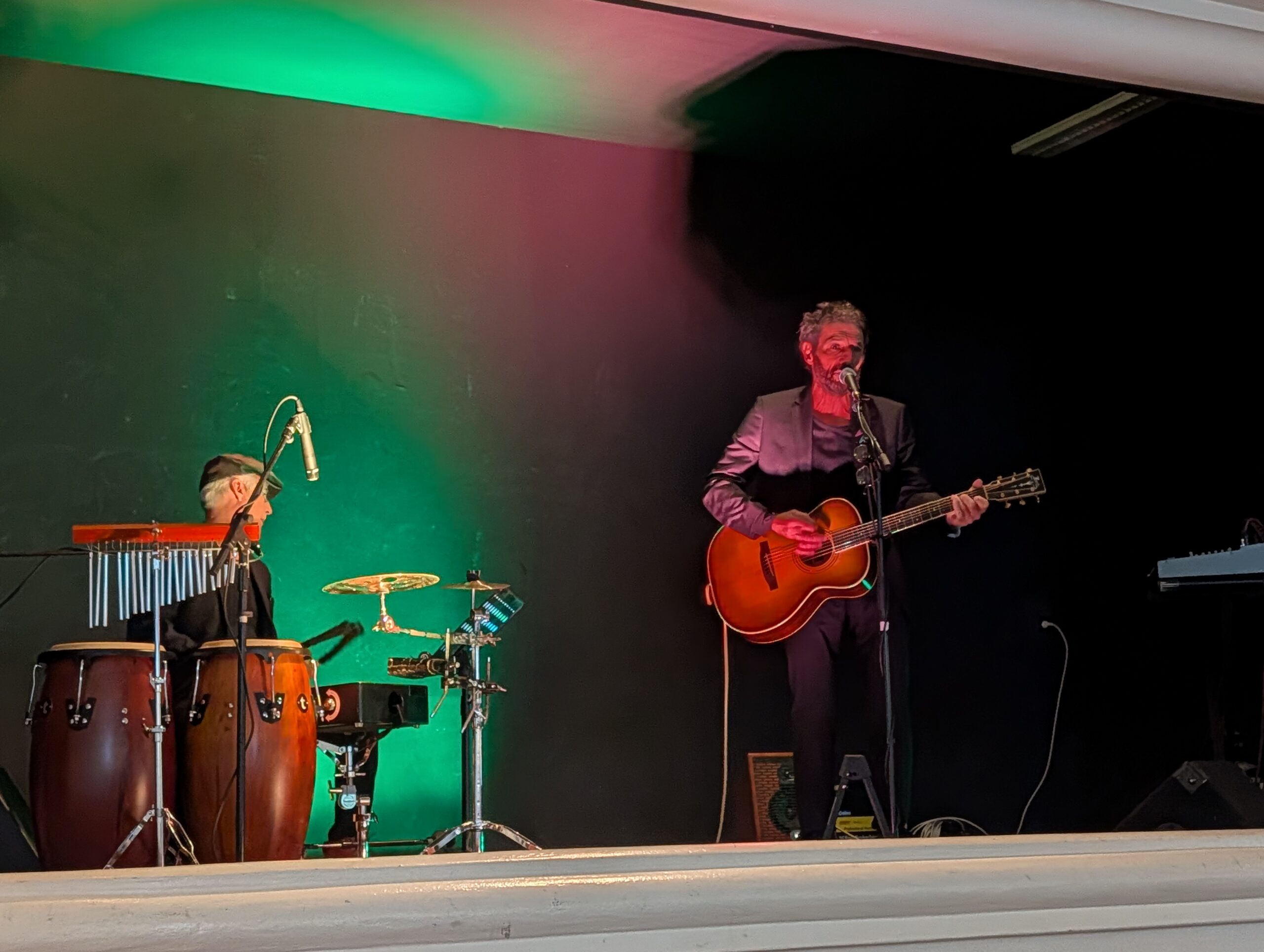 Accompagné de Rodolphe, son partenaire percussionniste, ils ont joué une musique aux accents rock américain et britannique qui a su captiver la foule nombreuse venue pour profiter de ce spectacle gratuit.