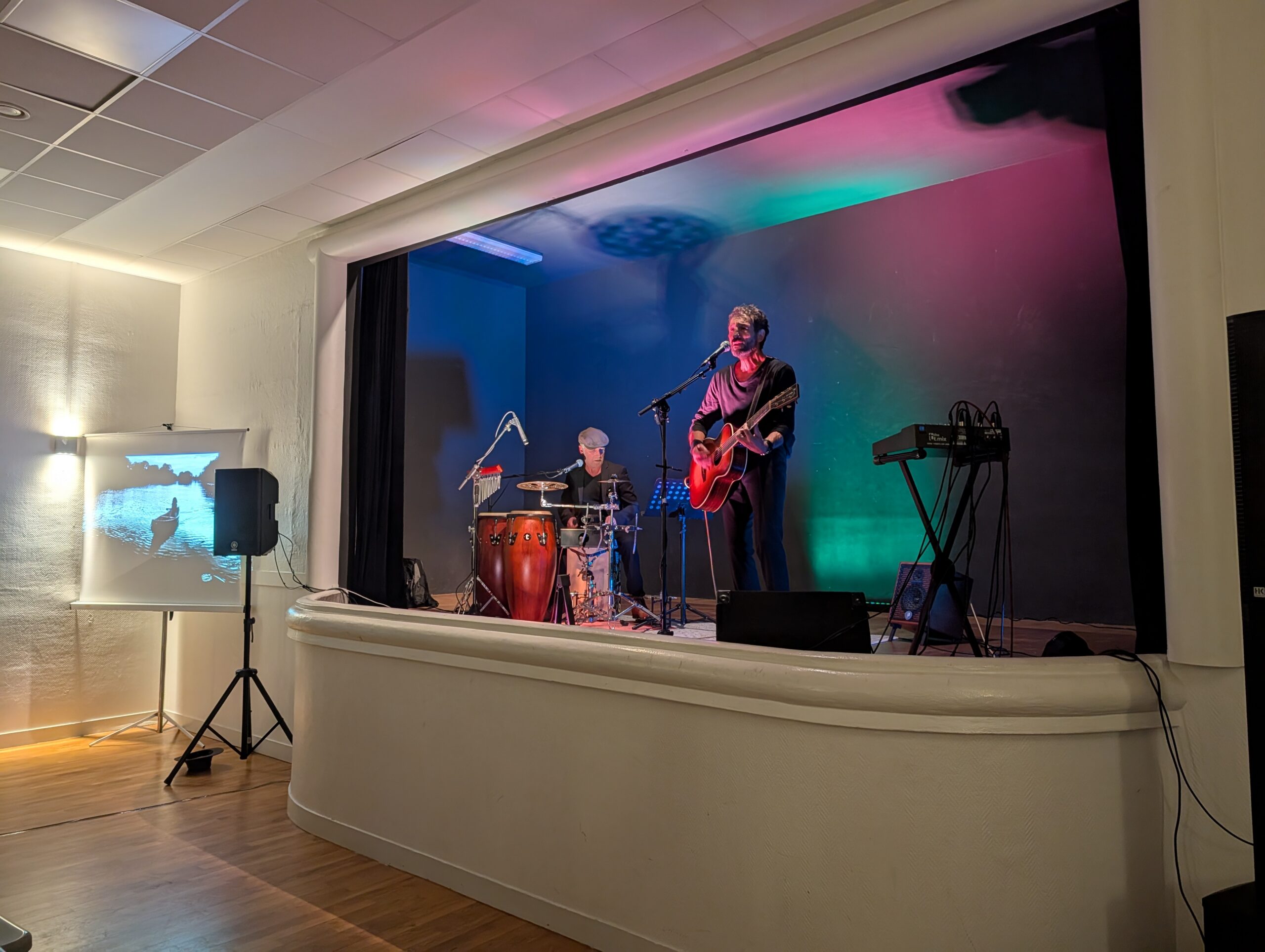 Samedi 4 Octobre 2025, Vincent Maillard nous proposait un Apéro Concert Dédicace organisé par la bibliothèque dans la salle des fêtes de Mezy-sur-Seine. Si les bénévoles de la bibliothèque se sont occupé de la partie Apéro, Vincent, lui, a tenu la scène nous présentant quatre de ses livres en musique.