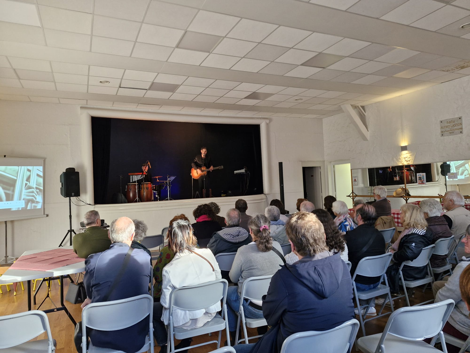 C’était hier.. et c’était bien. Tellement bien autour de Vincent Maillard et de Rodolphe, tellement nombreux ce public ami. La salle des fêtes était comble, les amateurs de bonne musique, de textes choisis et de bonne chère comblés. Quant aux bibliothécaires… elles ne s’en remettront jamais! Merci à tous!💖🎶🎸🙏